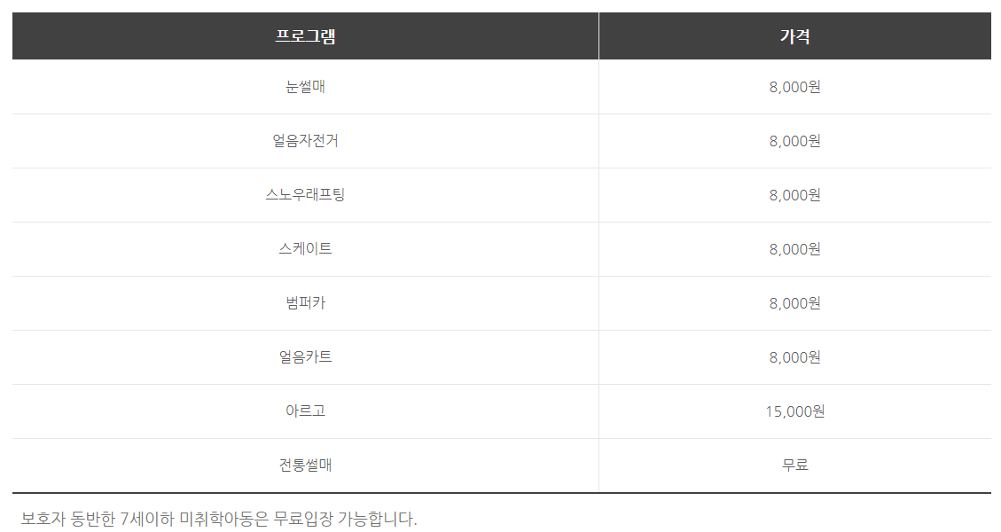 2. 송어축제 놀이시설 이용요금