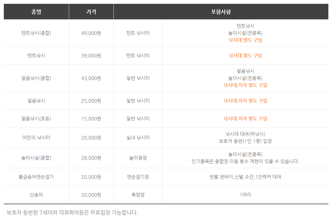 ✅ 포함사항 : 낚싯대 대여(찌낚시), 보호자 동반(1인 1명) 입장