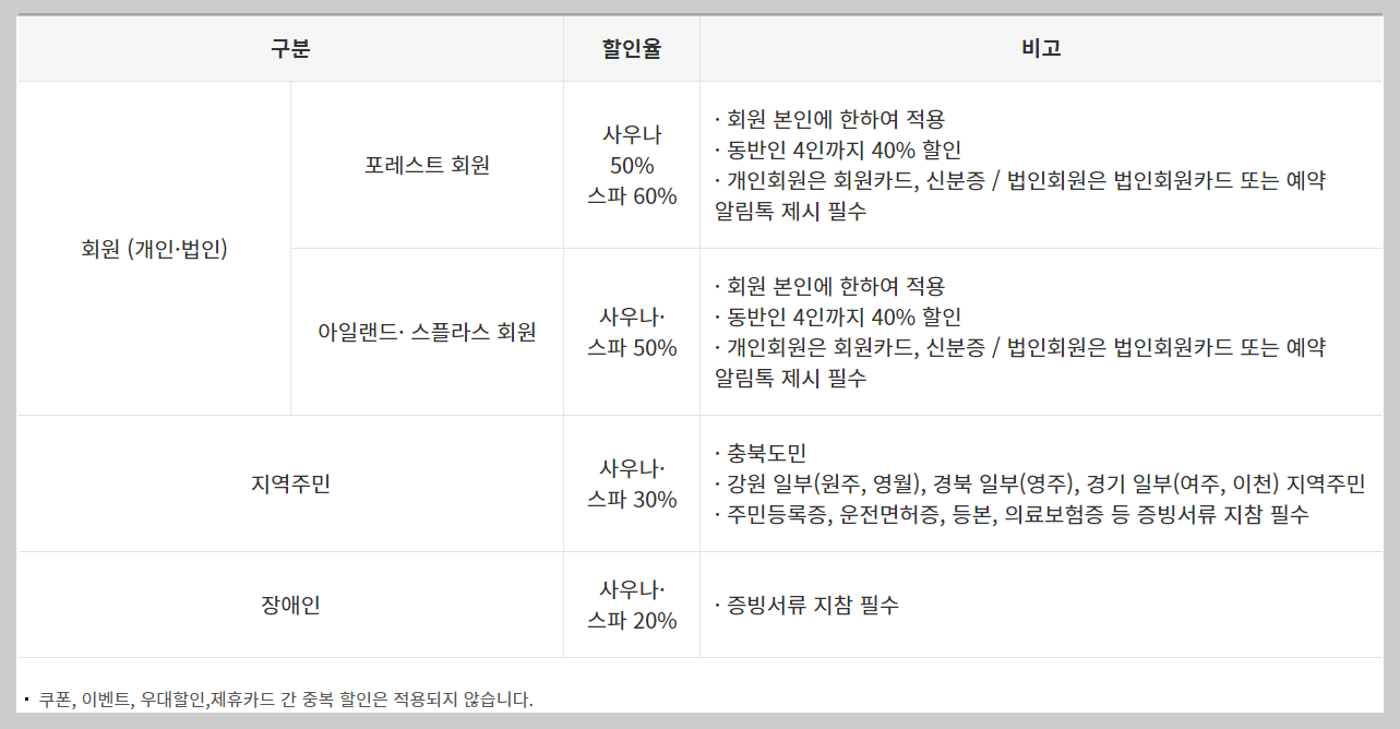 ※ 할인 대상자는 해당 증명서 제시필요.