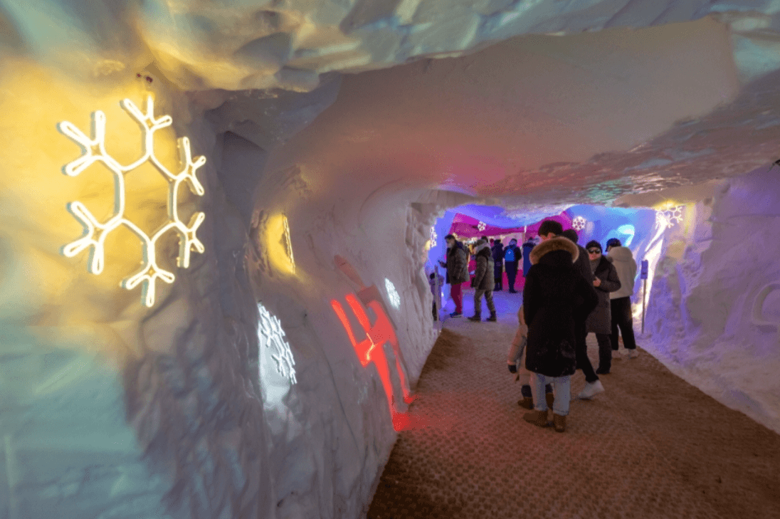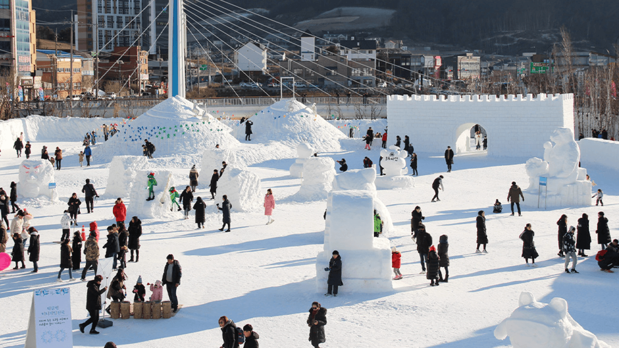 - 대관령 청룡 눈터널 : 100% 눈으로만 만든 대형 눈터널로, 길이는 100m로 조성된 얼음조각과 이색적인 볼거리가 가득합니다.