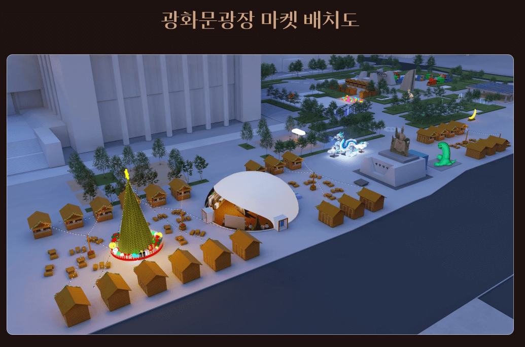 마켓행사는 광화문광장 중앙 및 세종로 공원에서 진행됩니다. 마켓 내에 대형 트리를 조성하며, 행사에 참여하는 시민들에게 추억을 만들 수 있는 다양한 포토존도 마련되어 있다고 하네요.
