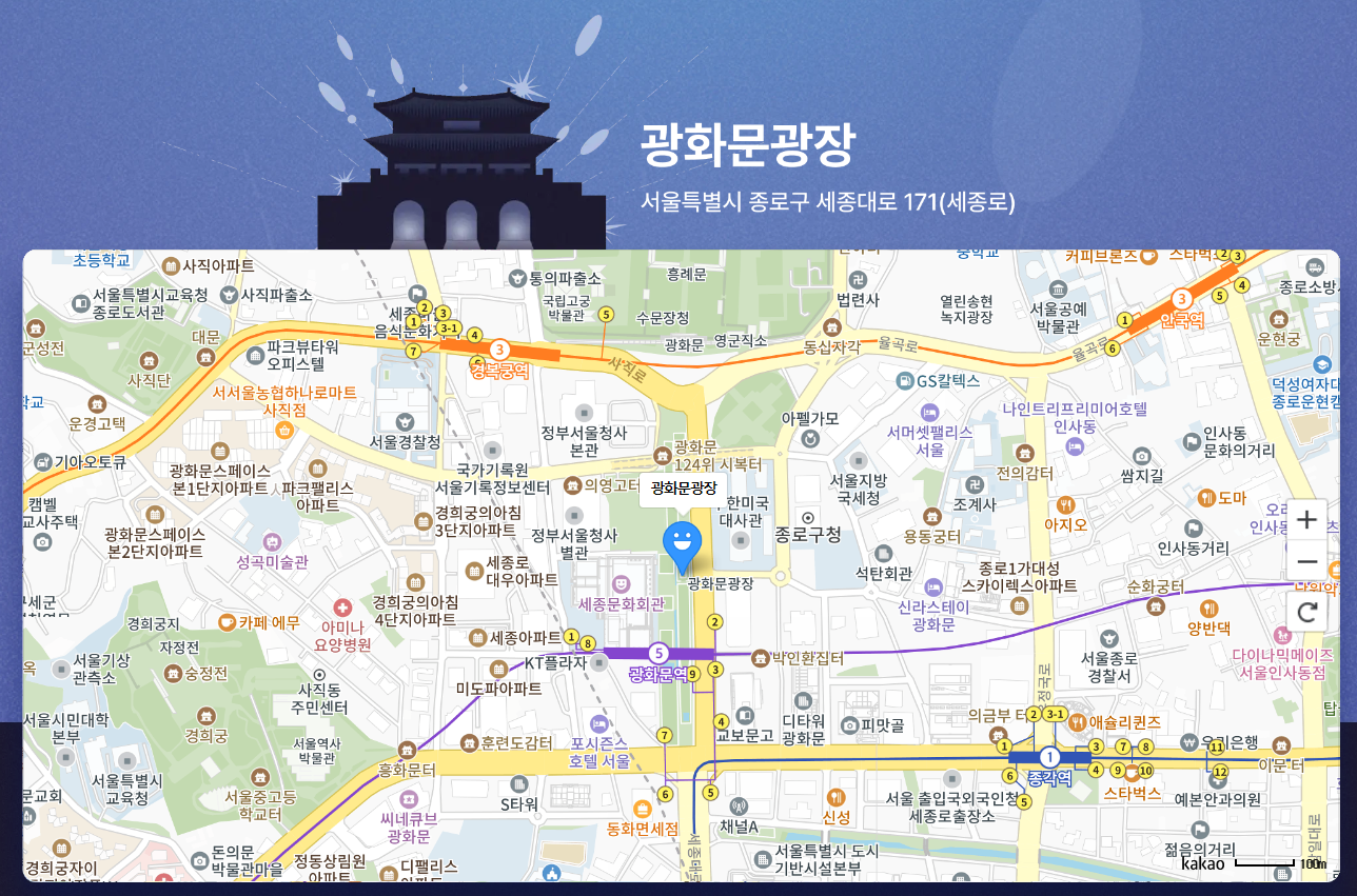 - 광화문광장 : 서울특별시 종로구 세종대로 171(세종로)