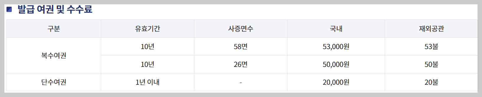 4. 발급여권 수수료