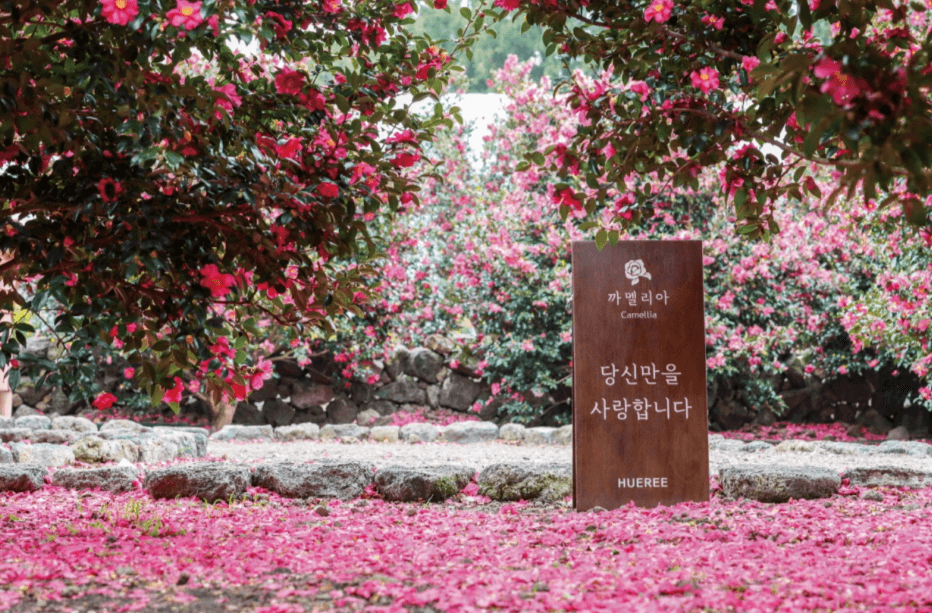 휴애리 곳곳에 분홍빛의 아름다운 동백꽃뿐만 아니라, 추억을 남길 수 있는 포토존 그리고 체험 및 볼거리가 가득하다고 합니다.