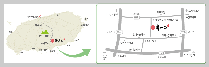 - 위치 : 제주특별자치도 서귀포시 남원읍 신례동로 256 휴애리 자연생활공원( 휴애리 길찾기)
