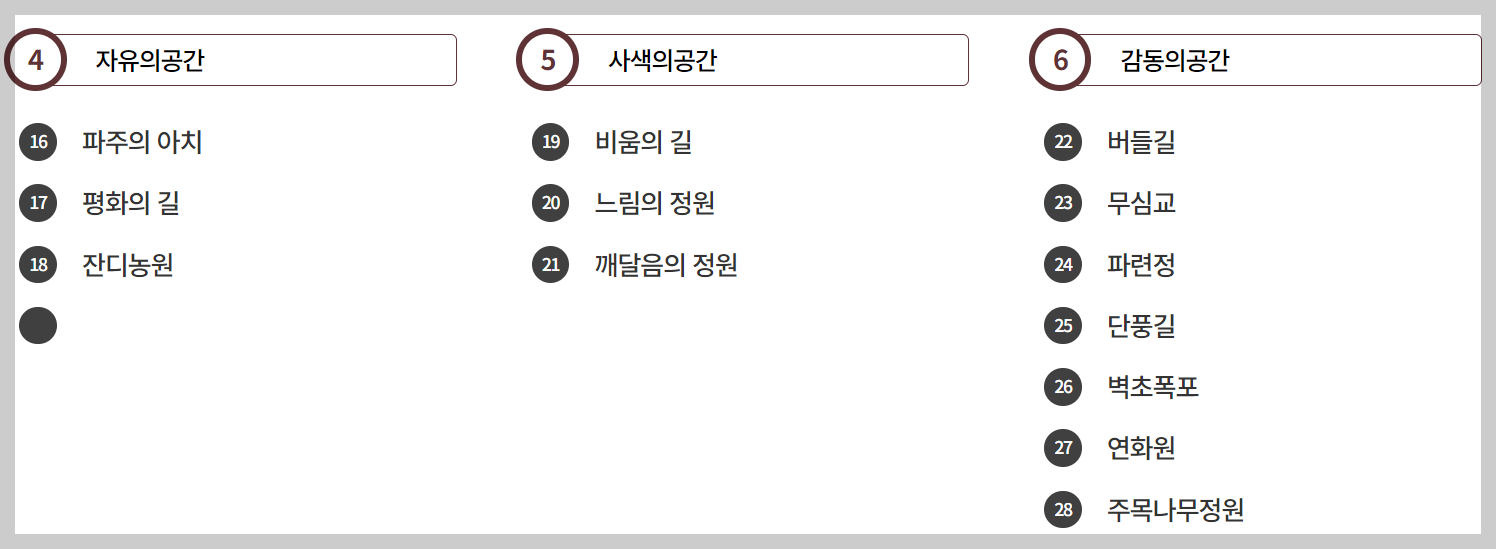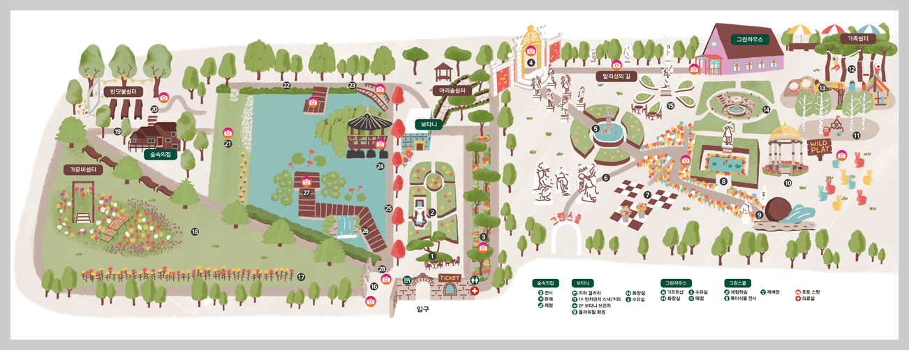 파주 벽초지수목원의 정원은 6개의 테마로 이루어져 있어요. 아래 순서대로 관람하시는 것을 추천드립니다.^^